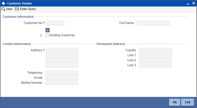 Click ‘Customer Information’ button in the ‘Receive and Verify’ screen and invoke the ‘Customer Details’ screen.