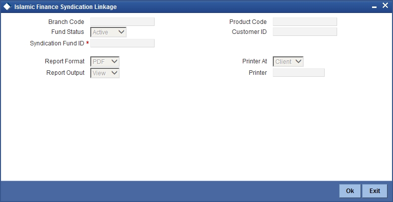 You can maintain the following parameters to generate ‘Islamic Financial Syndication Linkage Report’: