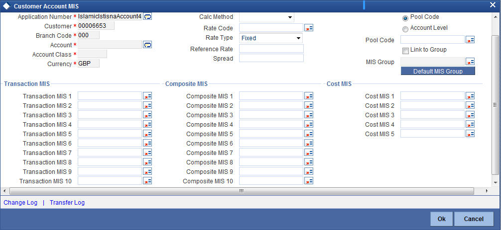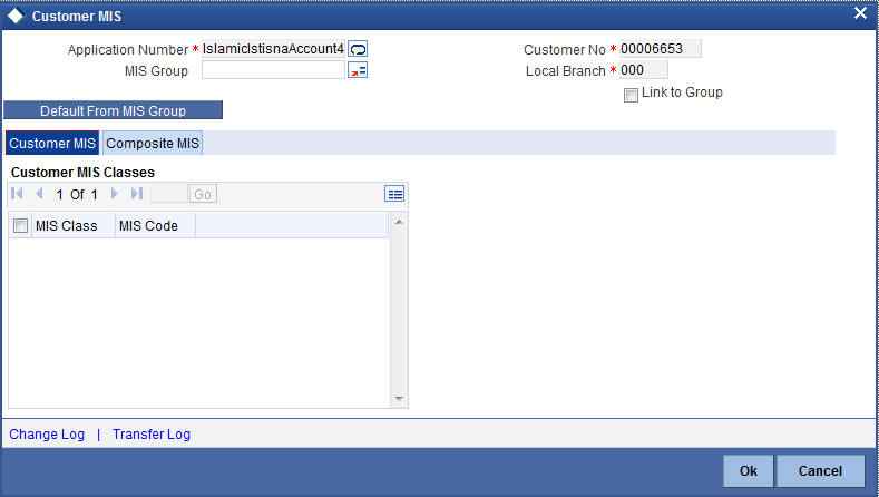 You can capture the Finance MIS details by clicking ‘Finance MIS’ button in ‘Istisna Finance Underwriting’ screen.