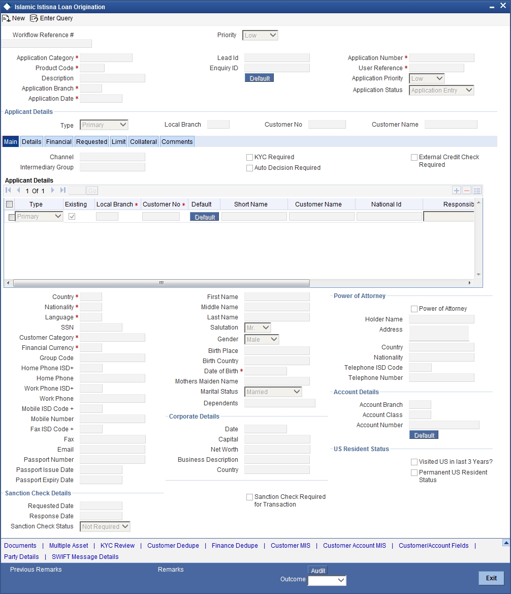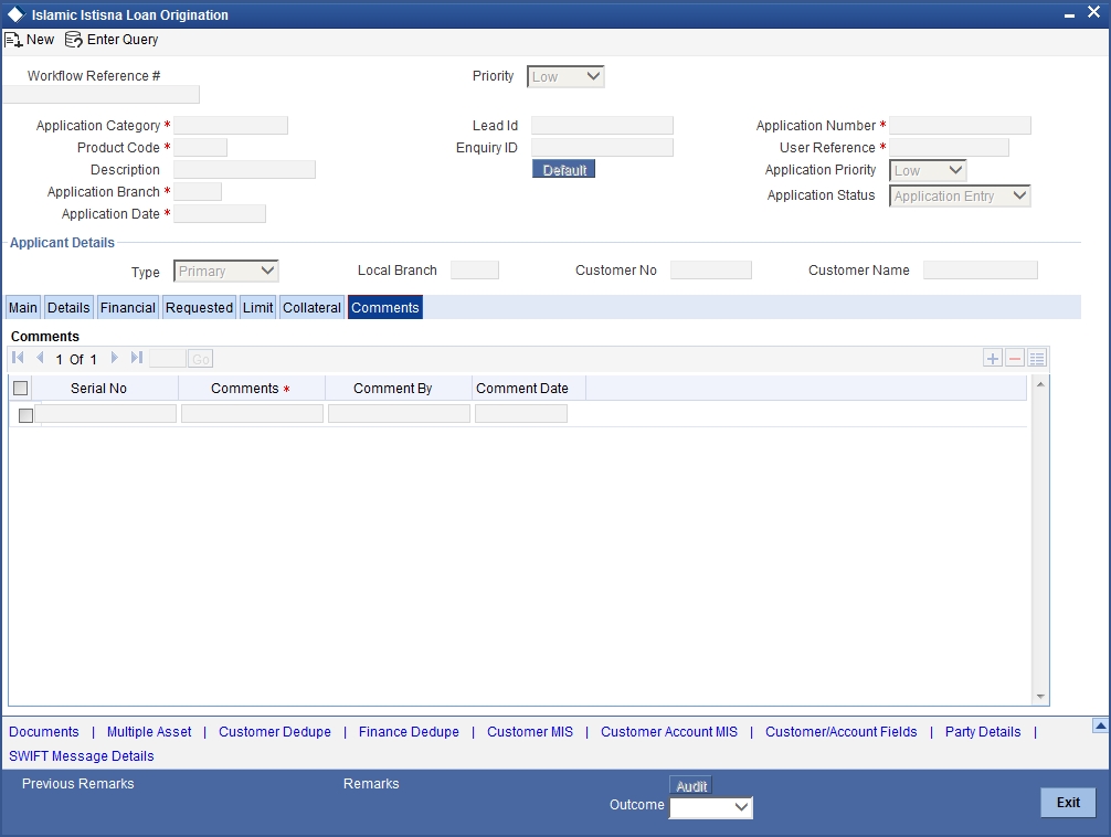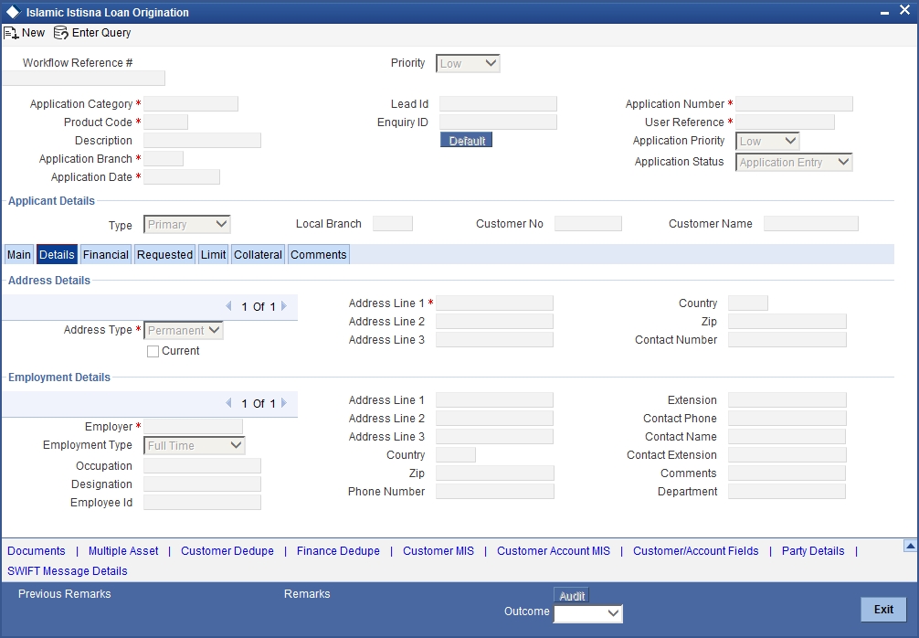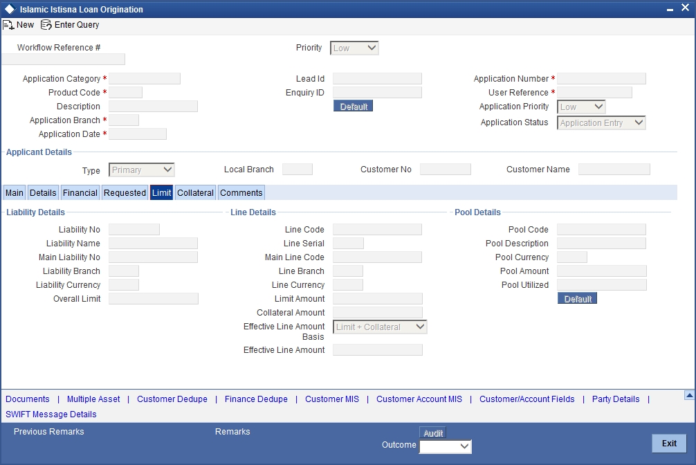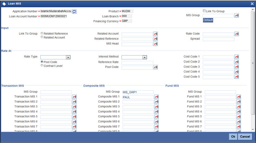 Refer the chapter titled ‘Operations’ in the Islamic Financing User Manual for further details about the other fields in the screen.