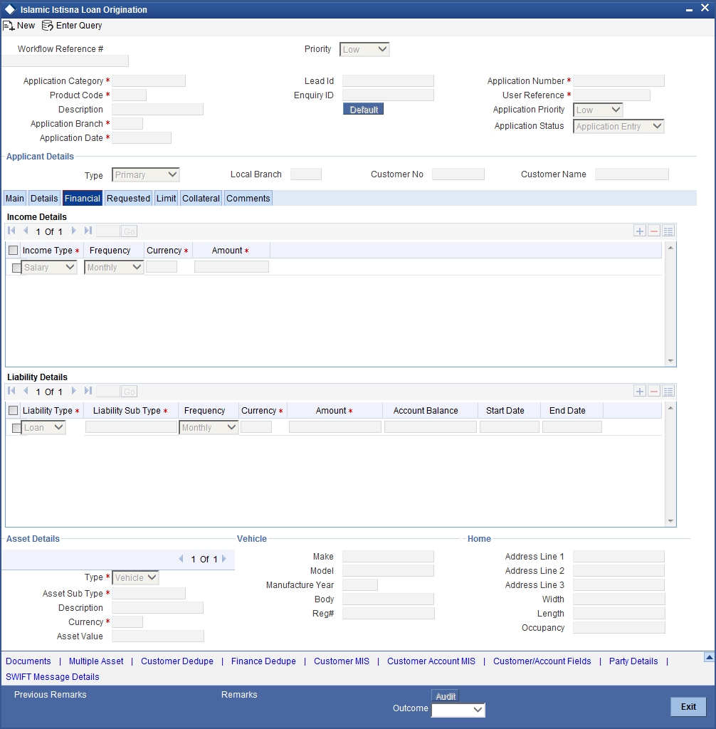 You can capture the Finance UDF details by clicking ‘Finance Fields’ button in ‘Istisna Finance Underwriting’ screen.