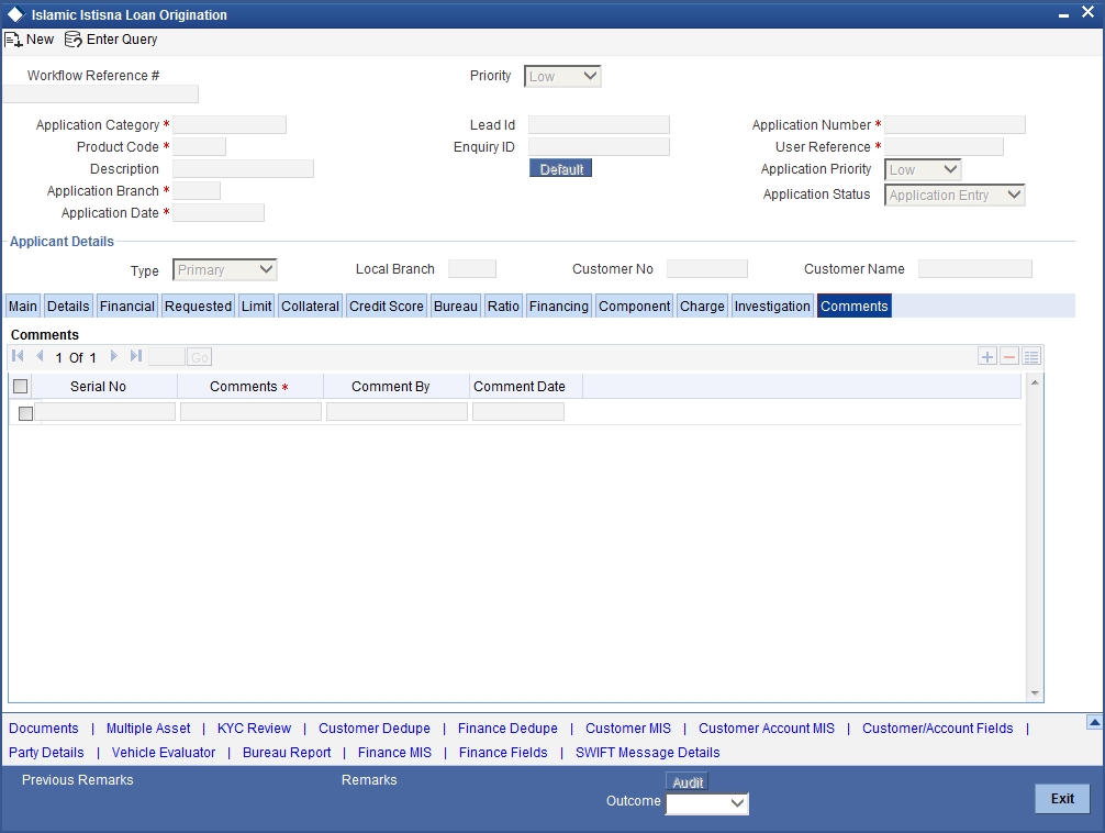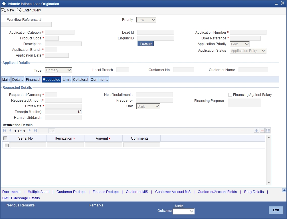 You can key-in the finance application details required in ‘Istisna Application Approval’ screen.