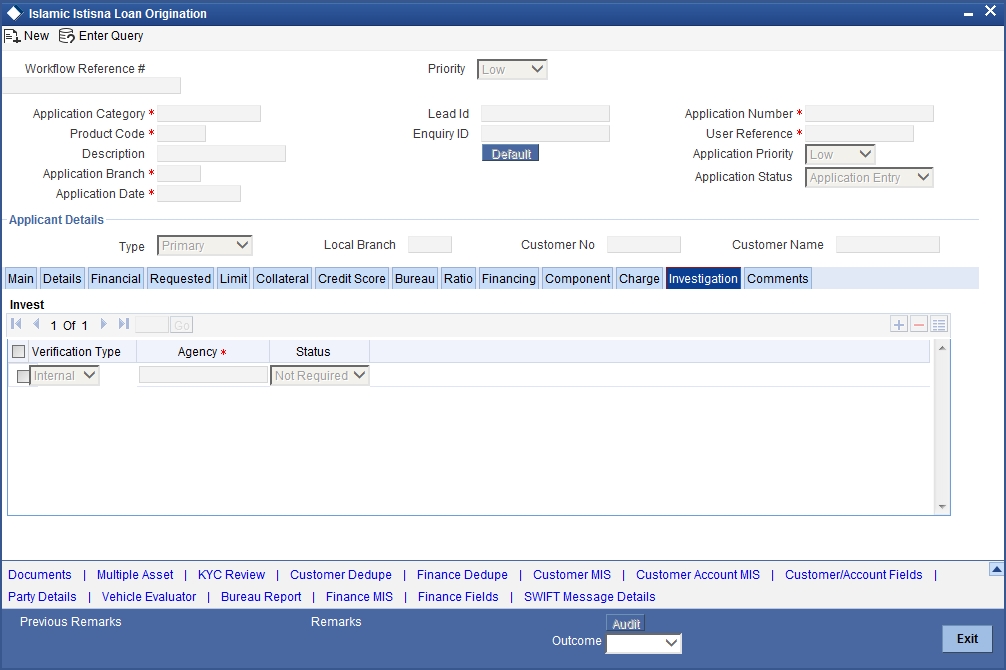 You can key-in the Finance application details required in ‘Istisna Document Verification’ screen.