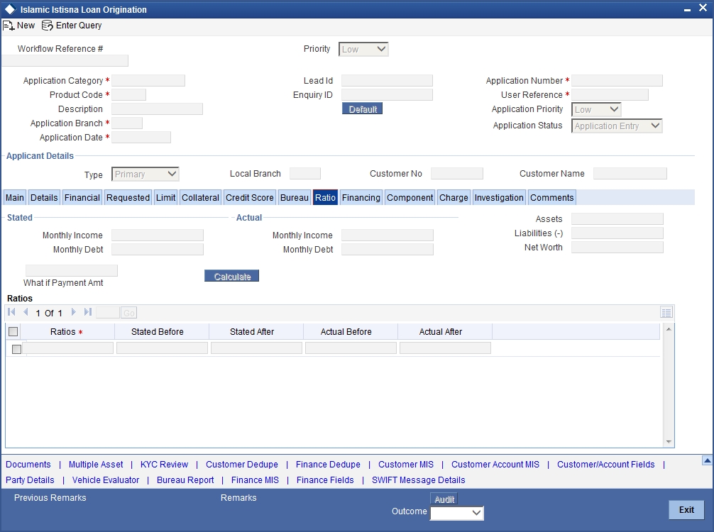 Click ‘Calculate Ratios’ button to calculate the asset/ liability ratios for the customer.