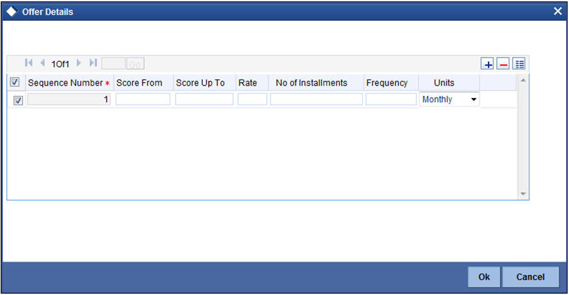 The offers maintained at the category level is displayed in the multiple offers block . The system compares the number of installments, frequencies and unit with the value in the requested tab at application entry stage. The rate in the offers block is compared with rate maintained in the pricing Id. The system applies that offer which matches with the mentioned criteria in the offer block. If the offer fails to match then a new row is added which will take its value from the pricing ID.