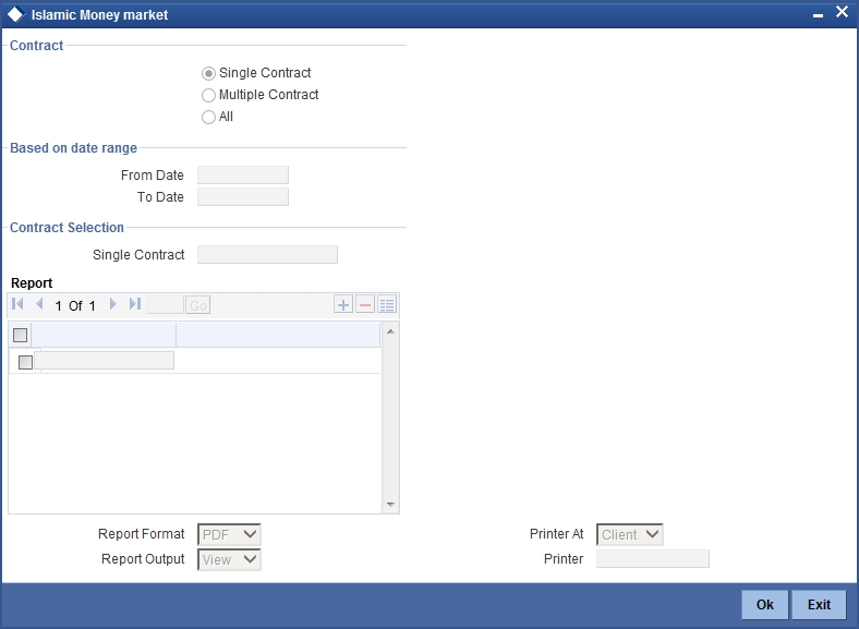 The report programs available under the Islamic Money Market module are explained in this chapter. The details that you have maintained under this module are stored by the system. You can extract such details in the form of meaningful reports when you require them.