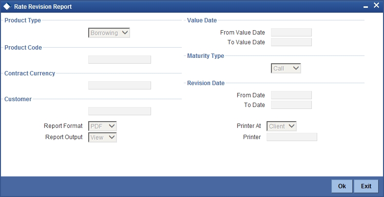 This report provides the retrieval details of Islamic money market contracts. To invoke the ‘Maturity Report’ screen, type ‘MCRPREVN’ in the field at the top right corner of the Application tool bar and click the adjoining arrow button.