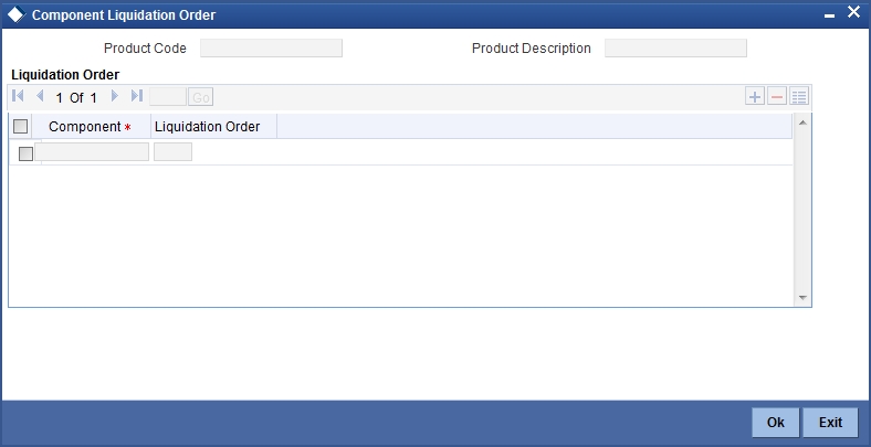 If you have defined automatic liquidation for the product, you can specify the order of liquidation of the various components, which have: