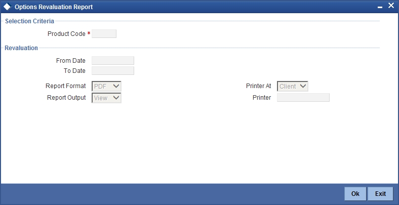Select the product code of the option product for which you wish to generate the revaluation report.