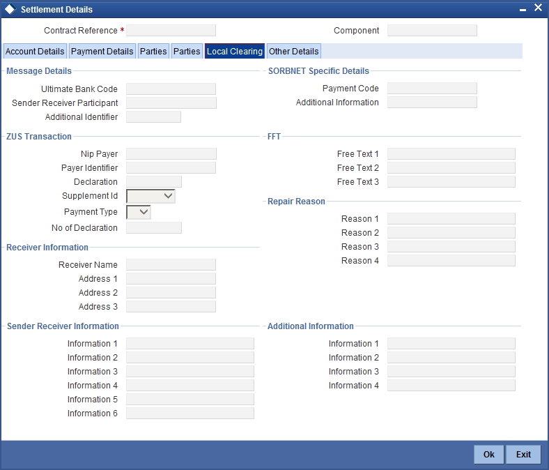 Once you click on 'Default' button, system defaults the values for 'Due date for payment', 'To be Dispatched On', 'Local Currency Amount' in the ‘Main’ tab and the Party ID and other details related to the party in ‘Parties’ tab.