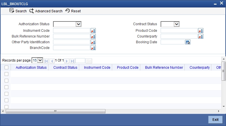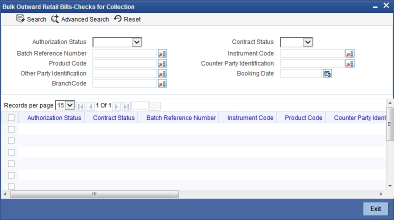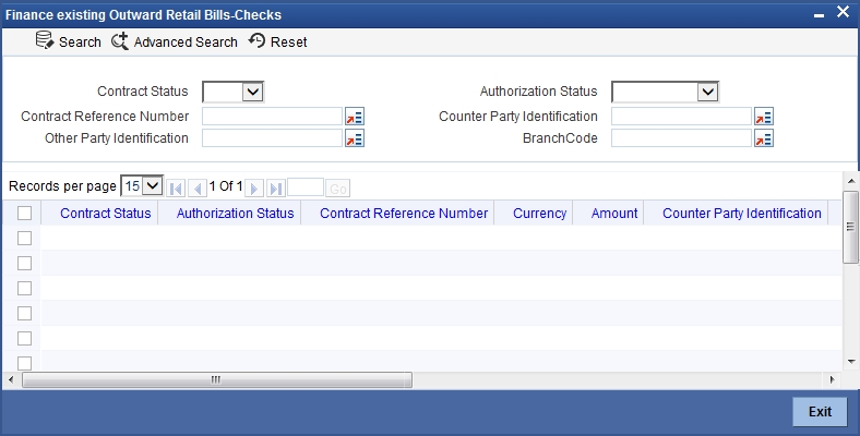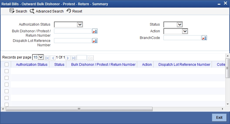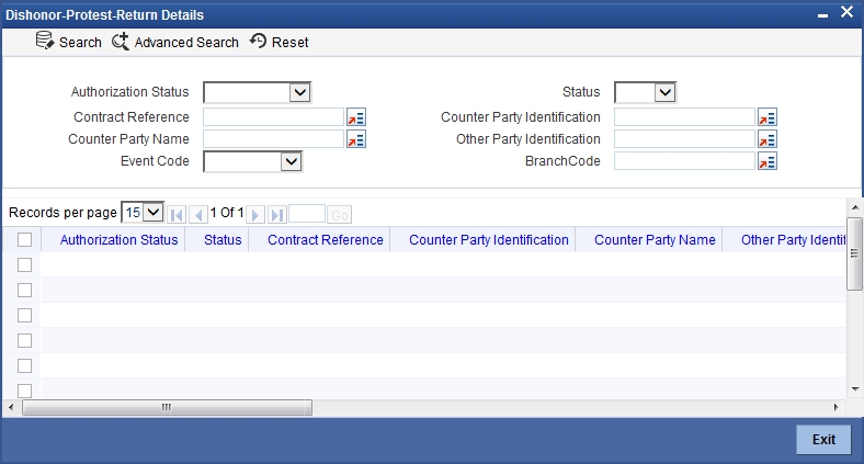 During dishonour/protest/return of the contracts selected for bulk processing, if any applicable validation fails, some of the contracts may not be processed. Sometimes, all contract in the batch may not be processed. You can get the details of such contracts by searching the records in the summary screen.