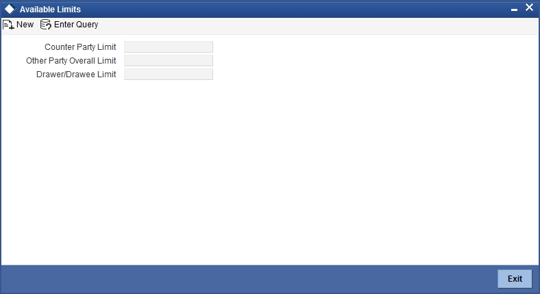 You can view the available limits in ‘Available Limits’ screen. Click ‘Available Limits’ button to invoke this screen.
