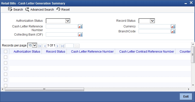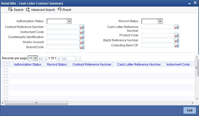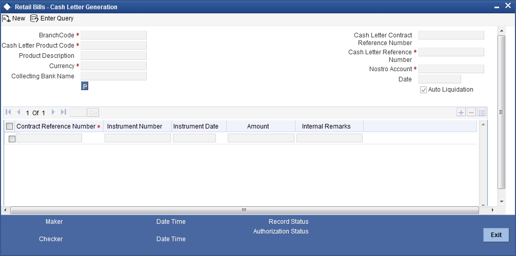 You can capture the details of outward foreign currency cheques under cash letter basis using ‘Retail Bills- Cash Letter Contract Details’ screen. You can also amend an existing cash letter contract using this screen.