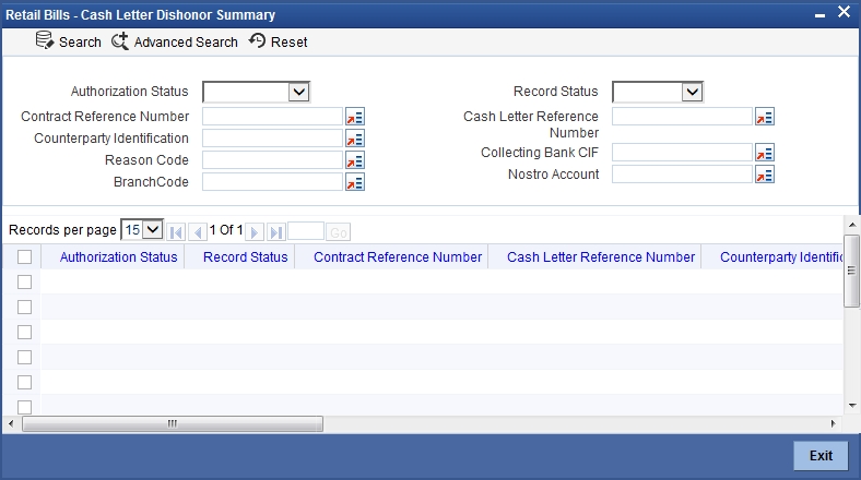 Specify the reason code for dishonour. The option list displays all valid reason codes against which a cash letter can be dishonoured. You can select a reason code from the option list.
