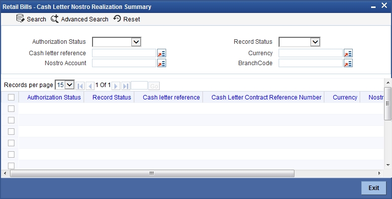 You can realize the proceeds credited by a correspondent under the cash letter credit advice using ‘Retail Bills - Cash Letter Nostro Realization Details’ screen. The bank can park the proceeds to the suspense GL.