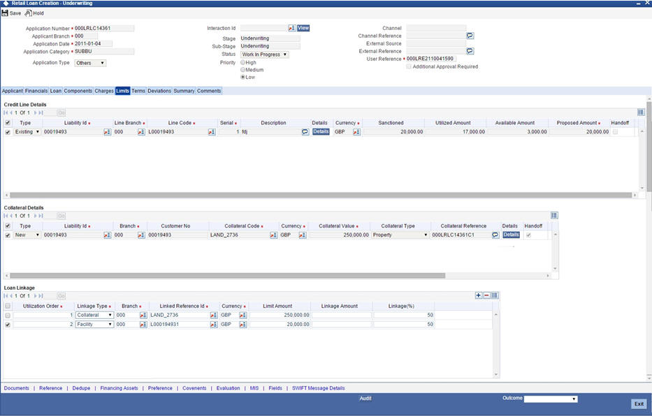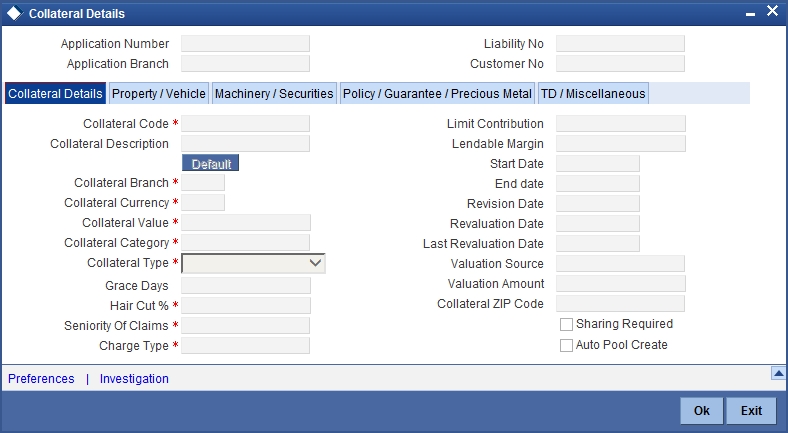 For details on Collaterals, refer to the section ‘Collateral Maintenance’ in the chapter 'Limits and Collaterals' in Limits and Collateral Management User Manual.