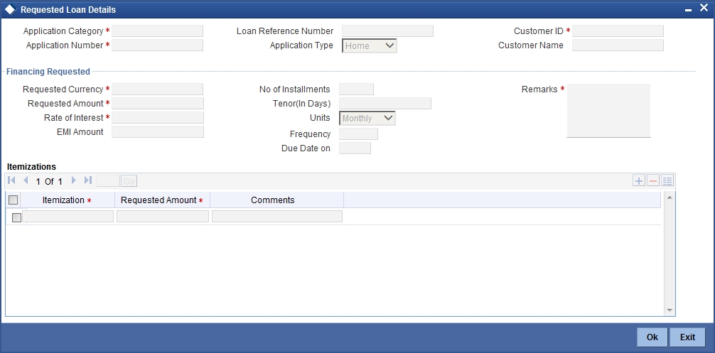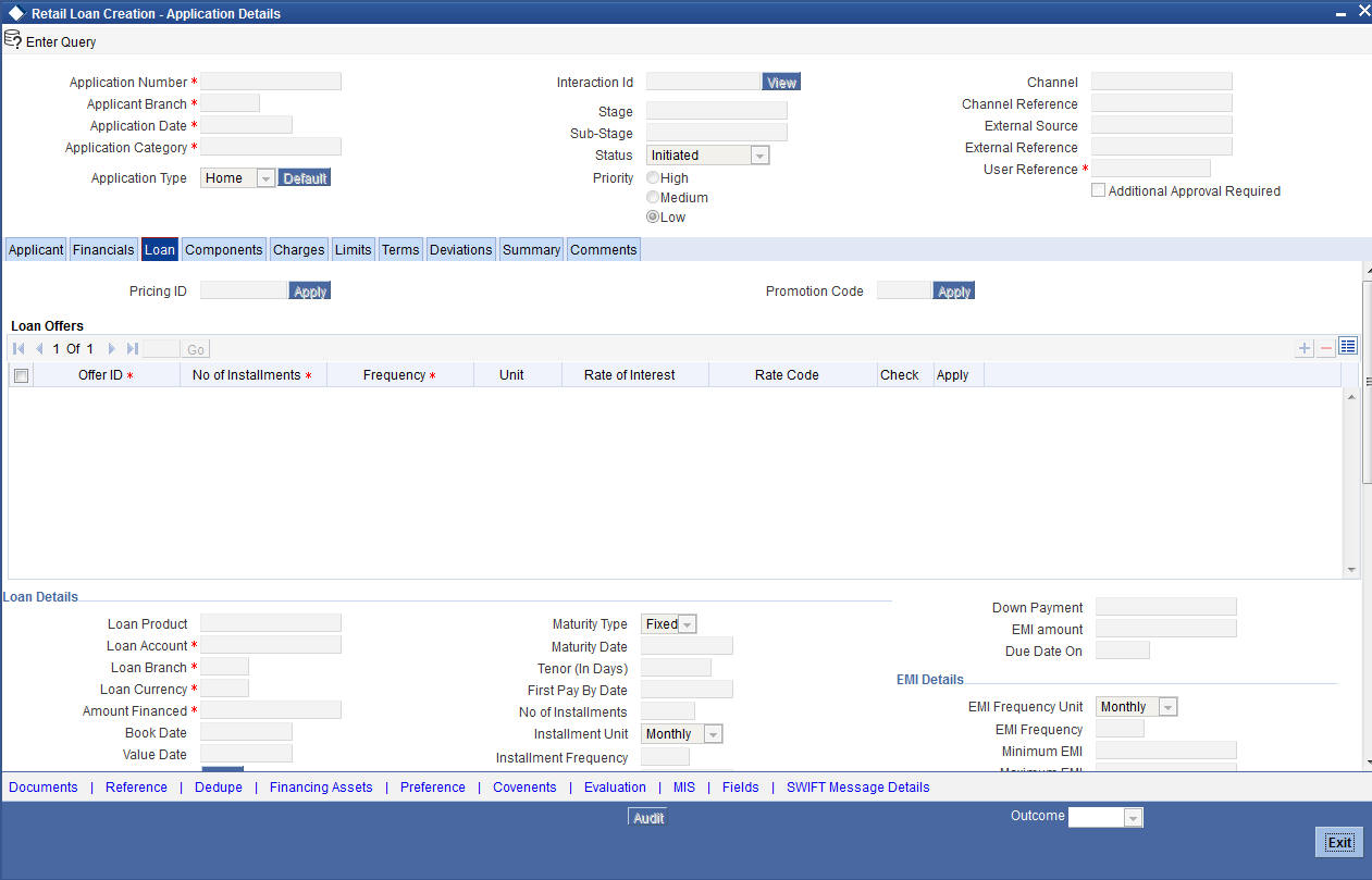 You can create a retail loan application in ‘Retail Loan Creation’ screen, if you have the required access rights. You can invoke this screen by typing ‘ORDRLCAP’ in the field at the top right corner of the Application tool bar and clicking the adjoining arrow button..