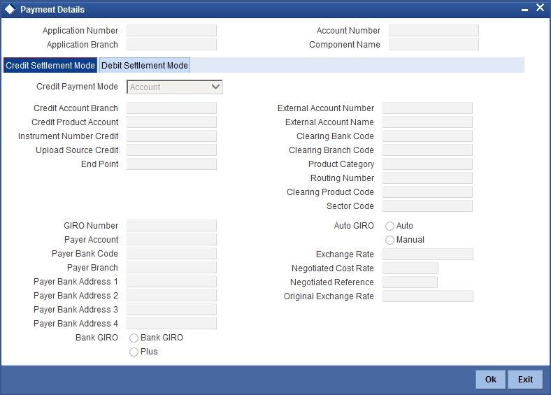 For information on Payment Details, refer to the section ‘Payment Mode Details Button’ in the chapter 'Account Creation' in Retail Lending User Manual.
