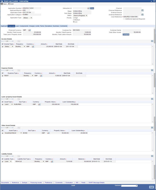 For information on Other Applicant Details, refer to the section ‘Other Applicants Button’ in the chapter 'Account Creation' in Retail Lending User Manual.