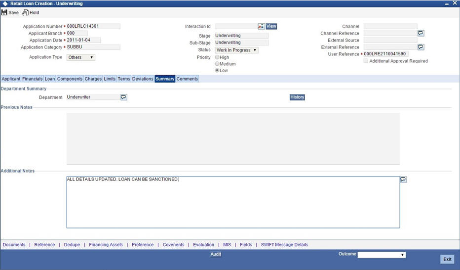 14 | Underwriting Review | ORDRLCUR | PROCEED | Loan Approval | Task is moved to ‘Loan Approval’ stage, when the user selects the outcome ‘PROCEED’ and saves the task. | |||||||||||||||||
