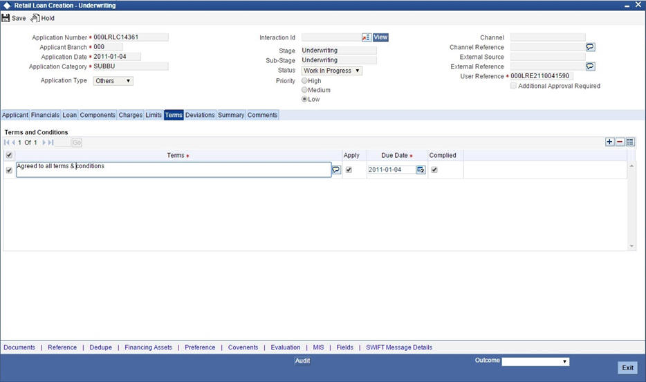 Oracle FLEXCUBE facilitates retail loan creation through a process flow. You can capture specific information based on the type of loan opted by the customer such as Home, Vehicle, Personal, Mortgage, Other Loans. This manual assist you through the available options, stages involved in the retail loan creation workflow. In the first section, the chapter briefs on the stages involved. The next section talks about the steps involved in detail.