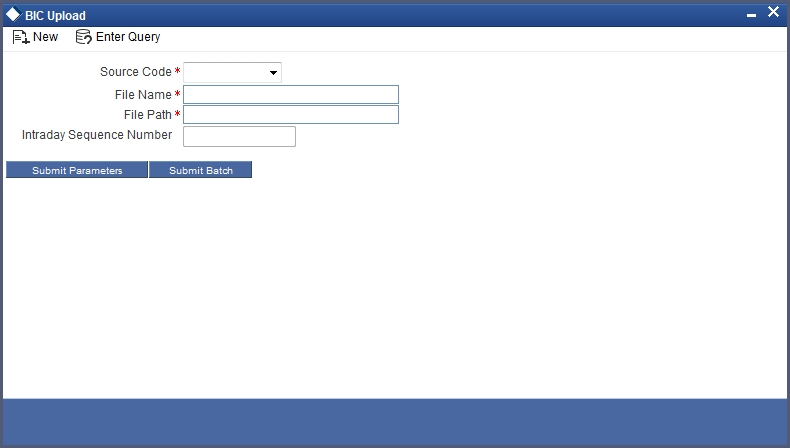 BIC codes can be maintained manually or uploaded from an external source onto Oracle FLEXCUBE.