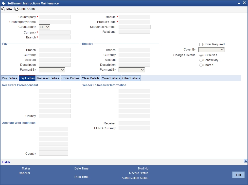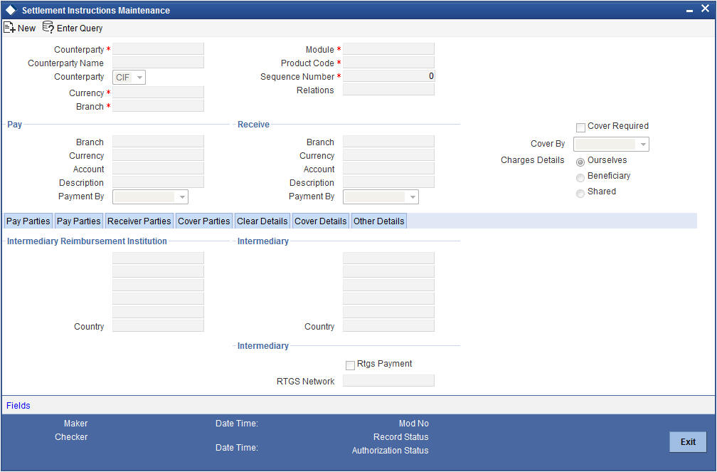 The Settlements sub-system is part of the core of Oracle FLEXCUBE. This system is a central money settlement service that interfaces with the other modules of Oracle FLEXCUBE.