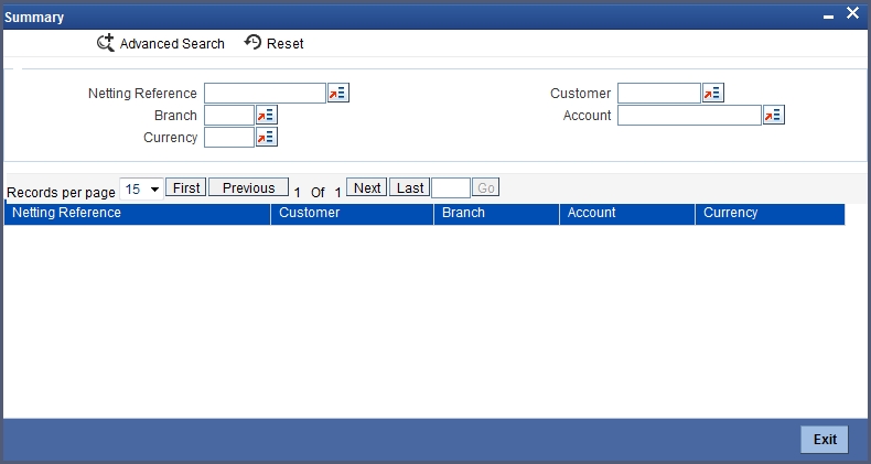 You will also be able to perform queries on the Netted Amount and the Netting Reference Number through the ‘Netting Across Modules Summary’ screen.