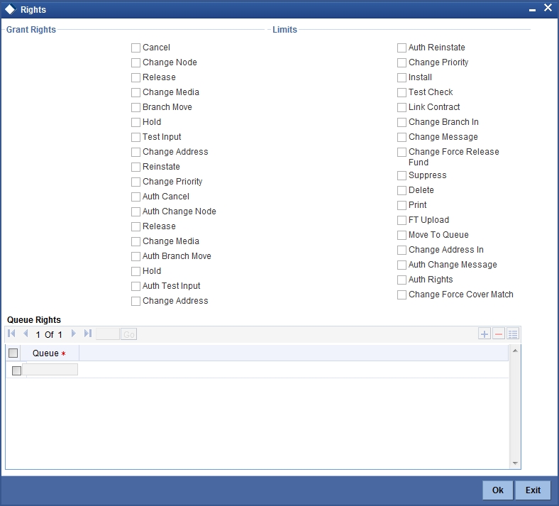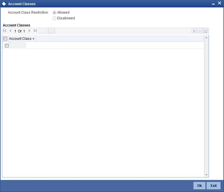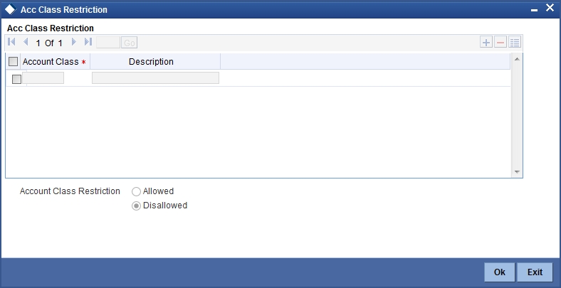 User will be able to query or modify the account details only for those customers whose group code is allowed to him. If a user tries to query or modify the account of the customer whose group code is restricted for him, system will display the error message “User is restricted to query or modify the account”.