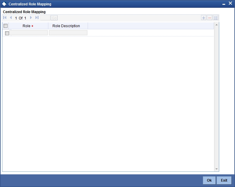 The centralization role can be linked to a user here. You can view centralized role maintained for the user profile in the ‘Centralized Role’ screen. Click ‘Centralized Role’ button to invoke this screen.