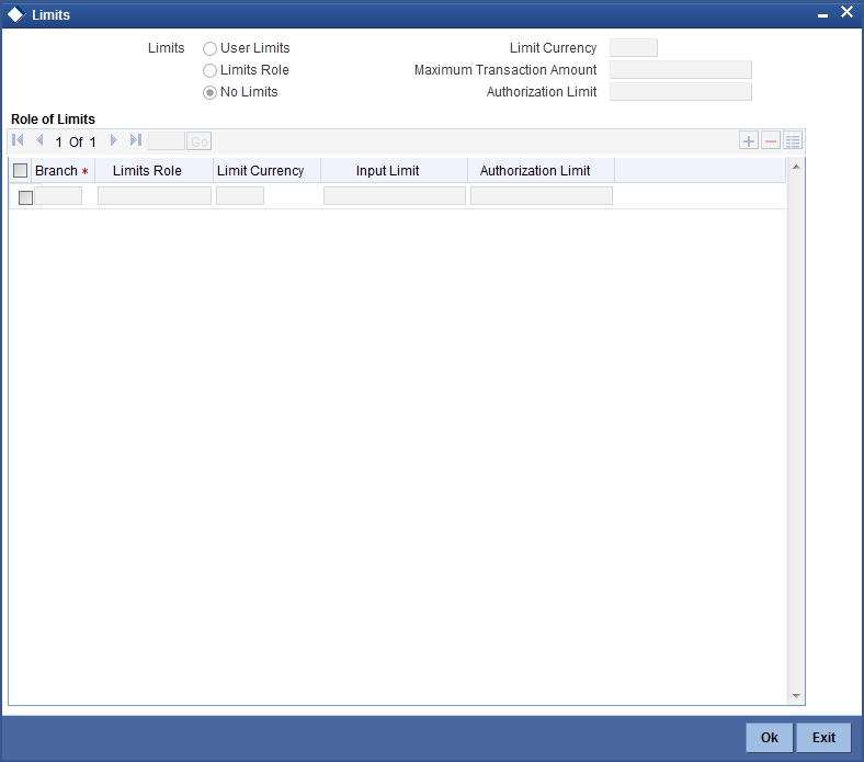 Specify the currency code in which the limit amount can be specified. Alternatively, you can select the currency code from the option list. The list displays all the currencies maintained in the system.