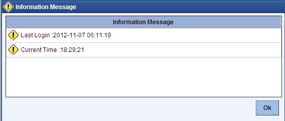 You can specify the text (content) of such a message, in the Warning Screen Text field. This message will be displayed soon after a user launches the Oracle FLEXCUBE login screen. The user will be allowed to continue with the login process only after he clicks on the OK button on the message window.
