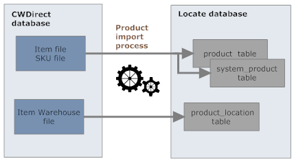 Mapping the CWDirect item and SKU code to the Locate product or system product code: If CWDirect is your default system in Locate, you can use the CWDirect item and SKU code as your product code in Locate; otherwise, if CWDirect is not the default in Locate, you can use another field, such as a UPC code, to identify the product code for the default system. The Locate Product Code ID (K66) system control value defines the product code mapping.