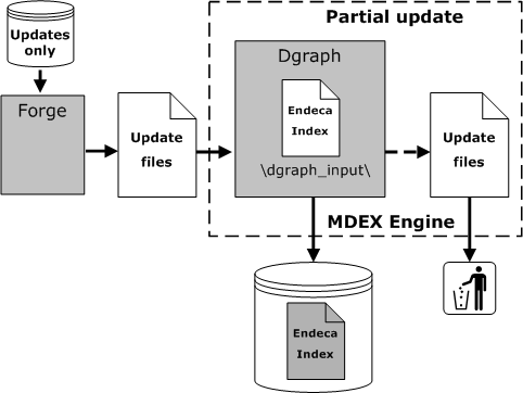 In the partial update process, Forge takes as its input the data from the partial pipeline configuration files and the updates data.