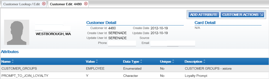 Email and phone: If you change the email address and phone numbers in Order Management System, the previous information persists in the Oracle Retail Customer Engagement database, although it is no longer displayed on the screen and does not repopulate the Order Management System customer record at resynchronization. However, if you search for a customer using the previous email address or phone number as a search criterion, the customer is eligible to be included in the search results.