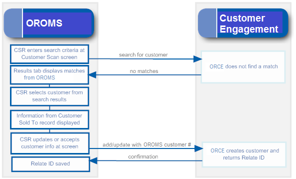 Oracle Retail Customer Engagement returns its Oracle Retail Customer Engagement customer number; if this number is different from the current Relate Id in the Customer Sold To table, Order Management System updates the Relate Id. The current Relate Id might be different if, for example, a merge/purge took place in Oracle Retail Customer Engagement.