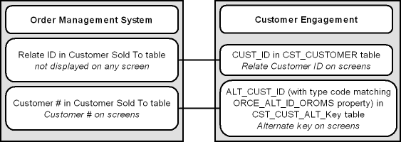 • Order Management System: the Relate Id in the Customer Sold To table identifies the customer number in Oracle Retail Customer Engagement
