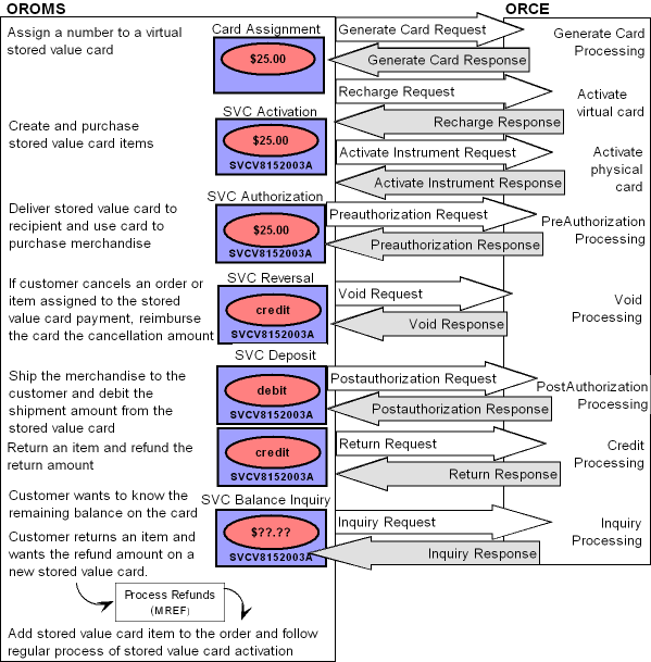 Oracle Retail Customer Engagement integration stored value card process flow: