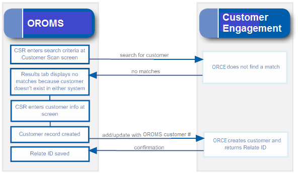 • If the customer exists, but does not currently have a Relate ID, Order Management System sends an update to Oracle Retail Customer Engagement and then updates the customer with the Relate ID it receives in the response.