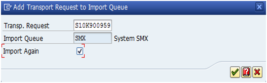「Import Overview」画面で、対象のシステムをダブルクリックします。この場合、SMXをダブルクリックすると、送信リクエストがSandboxサーバーにインポートされます。