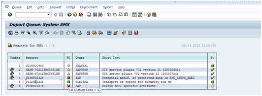 トランザクションSE10に移動し、すべての送信リクエストを解放します。