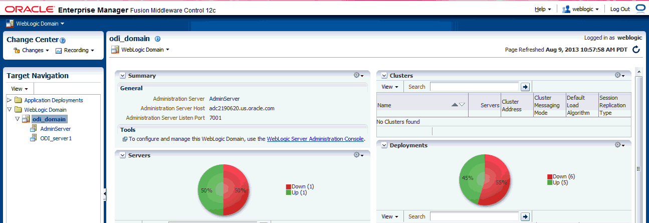 「ターゲット・ナビゲーション」ペインで、矢印をクリックして管理対象サーバー(ODI_server1)が表示されるまでドメインを展開します。