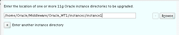 「インスタンス・ディレクトリ」画面で、アップグレード対象となる1つ以上の11g Oracleインスタンス・ディレクトリの場所を指定します。