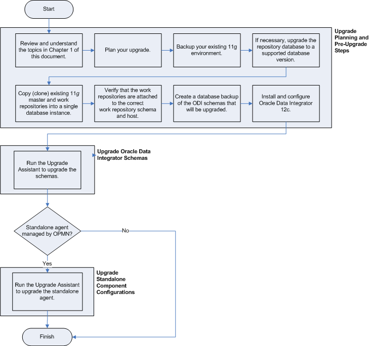 この章では、11g Oracle Data Integratorスタンドアロン・エージェント環境をOracle Fusion Middleware 12cにアップグレードするために必要なタスクについて説明します(有効な11g開始ポイントについては第1.1項を参照)。