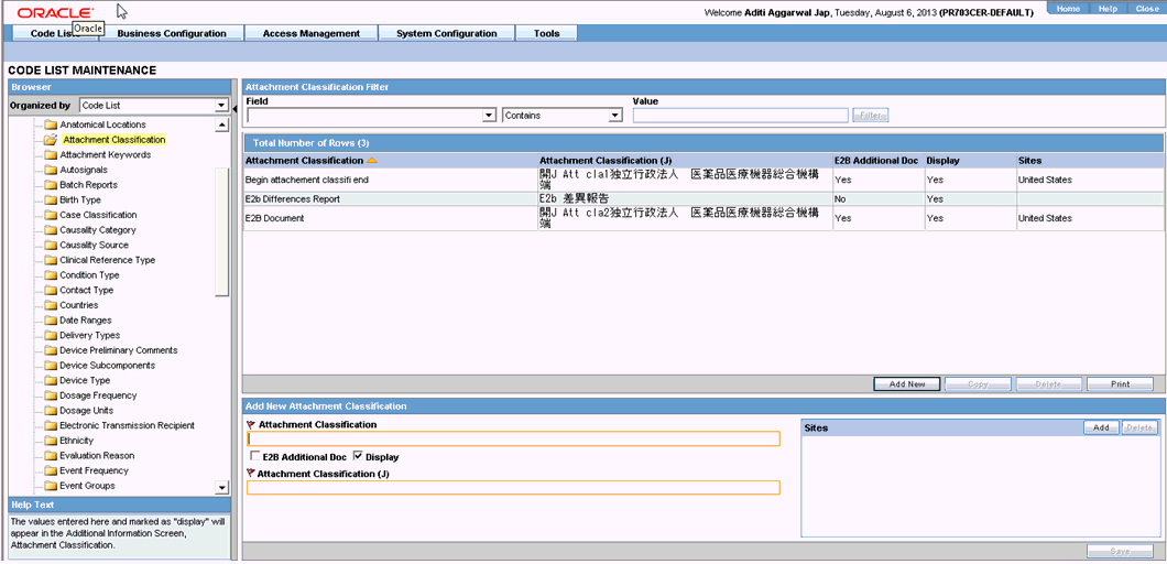 From the Argus Console, select Code Lists -> Argus -> Attachment Classification.