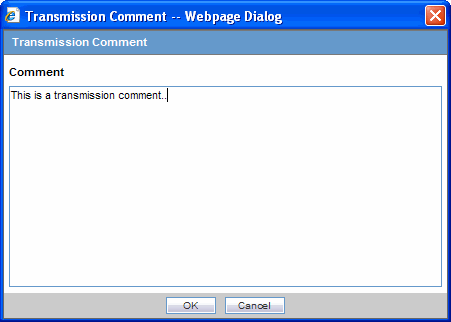 When the system opens the Transmission Comments dialog box, enter the notes for transmission.
