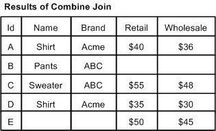 A combine join combines like records from a single data source. Combine is a pseudo-join that operates on a single source.