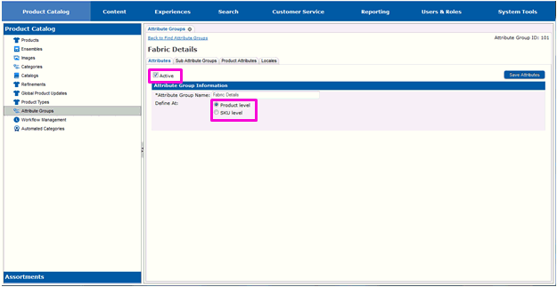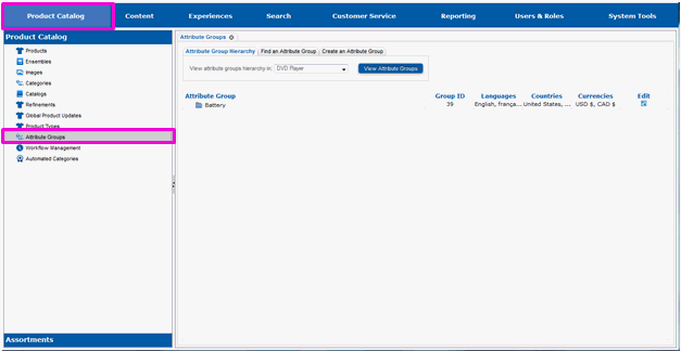 Attribute groups are created in the Product Catalog portion of the Site Manager.