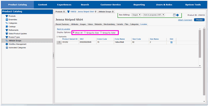 The page will redraw and you will see the variant attributes that can be modified.