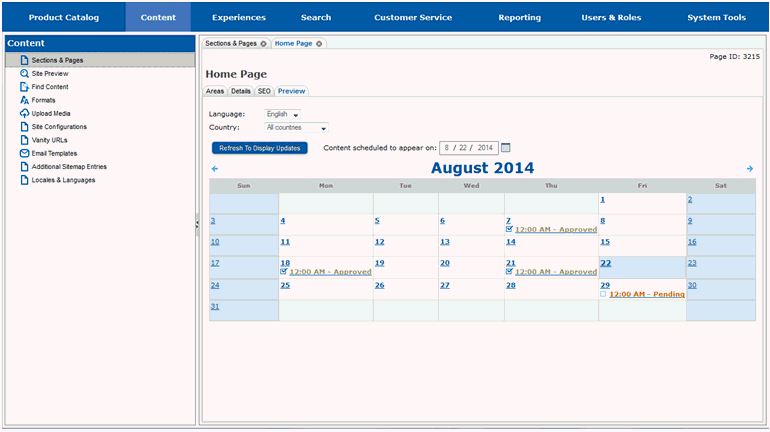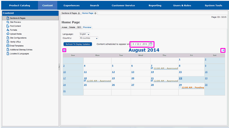 You will see the month your content is scheduled to appear in. On the date it is scheduled to appear, you should see the word Pending on the calendar. This indicates that there is new content that has been scheduled but not year approved for that date.